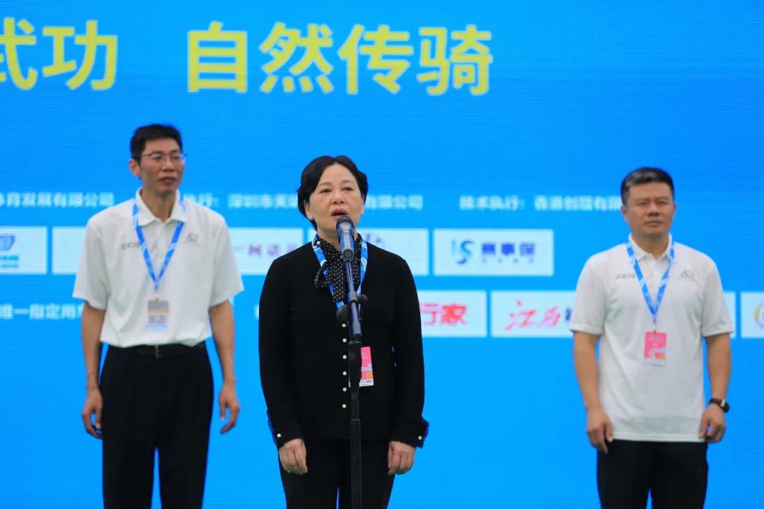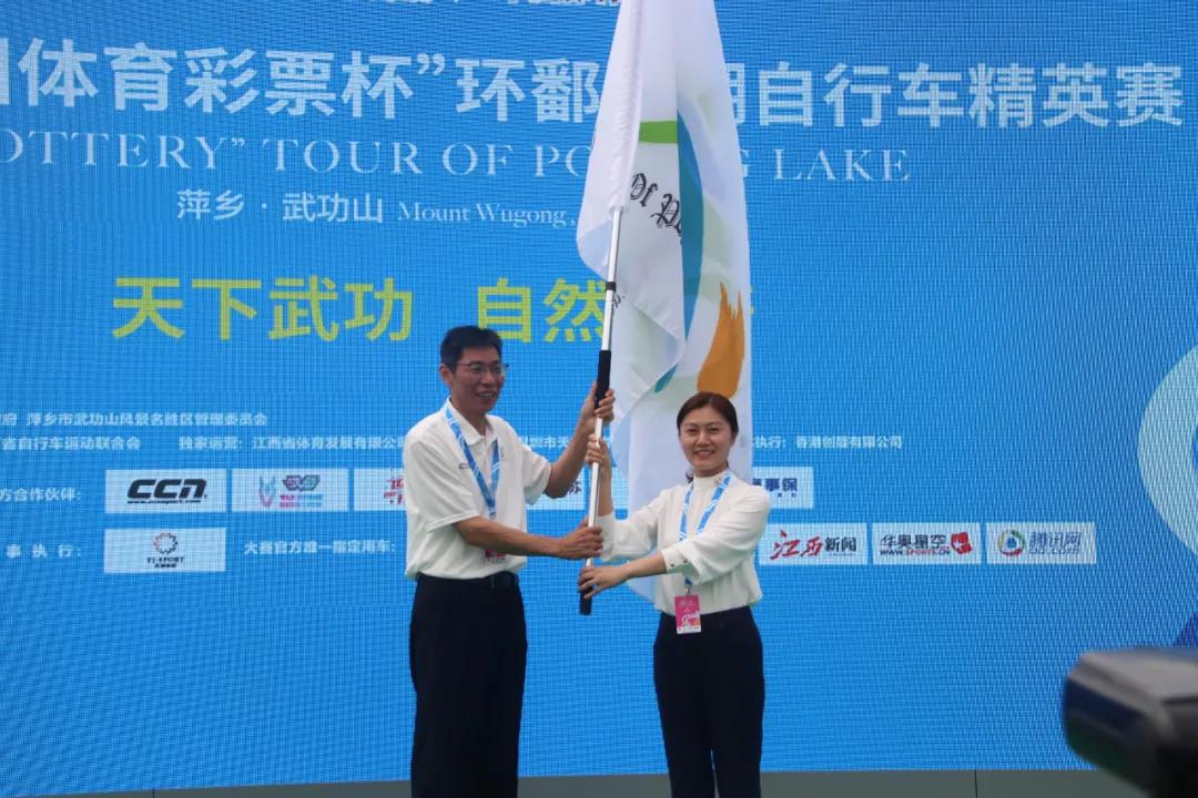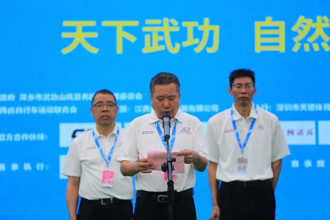 萍乡市人民政府副市长肖双燕宣布:2020年“中国体育彩票杯”环鄱阳湖自行车精英赛萍乡·武功山站开赛