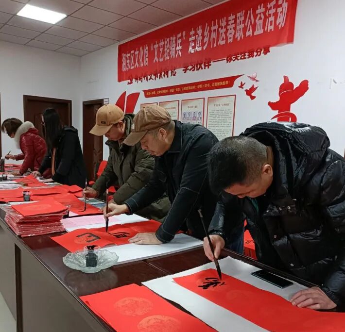 0人点过赞“红色文艺轻骑兵 · 新春文化进万家” 文 化 惠 民 一年一度的“春节”即将来临,新春气息渐浓,为弘扬中华传统文化,发挥好“文艺为人民服务”的作用,营造辞旧迎新、欢乐祥和的节日氛围,1月23日,湘东区文化馆携手萍乡市零七九九艺术家协会、萍乡市女摄影家协会的志愿者们走进白竺乡源头村,开展“红色文艺轻骑兵·新春文化进万家”文化惠民系列活动。 天气虽冷,源头村里却是暖意涌动。艺术志愿者们为当地村民现场免费拍摄全家福相片,送“福”、送春联、送年画活动,把一幅幅承载着新春祝福的“全家福”,一幅幅行云流水的春联,一个个喜庆吉祥的“福”字送到了群众手中。 此次“红色文艺轻骑兵·新春文化进万家”活动,不但传承了中华民族的传统文化,传递了对广大群众的暖暖关怀,也赢得了当地村民的一致好评。