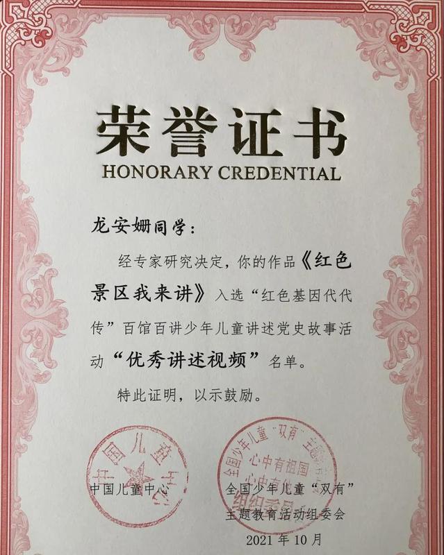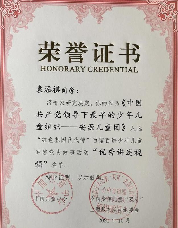 活动组委会组织专家指导会,针对已经报名参加活动的儿童讲党史的视频进行研讨与指导。最终,经过多方研讨论证,形成了第四批的入选名单,我馆红领巾讲解员龙安姗、袁添祺有幸位列其中,我馆也被评选为:“红色基因代代传”百馆百讲少年儿童讲述党史故事优秀组织单位。