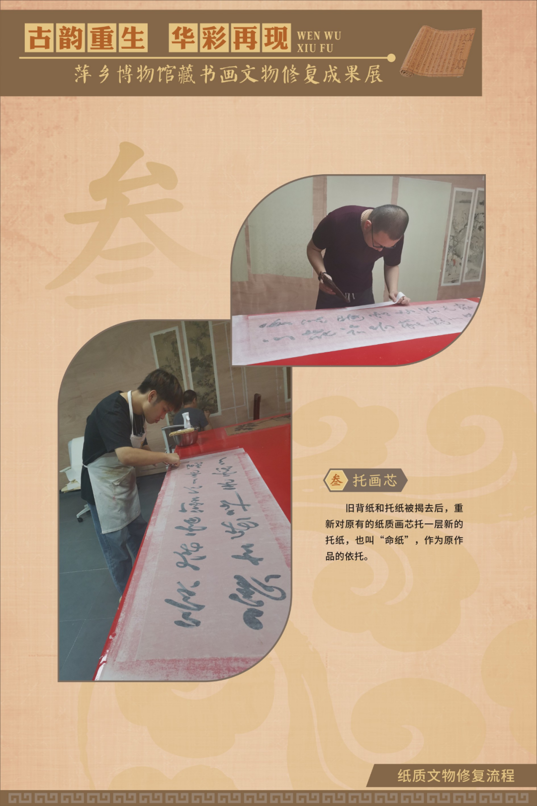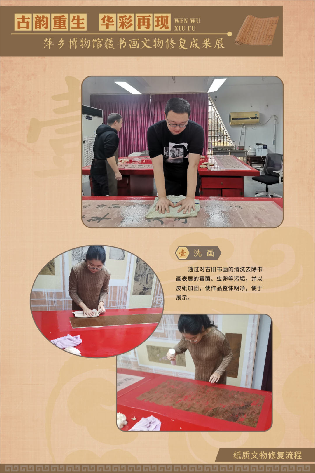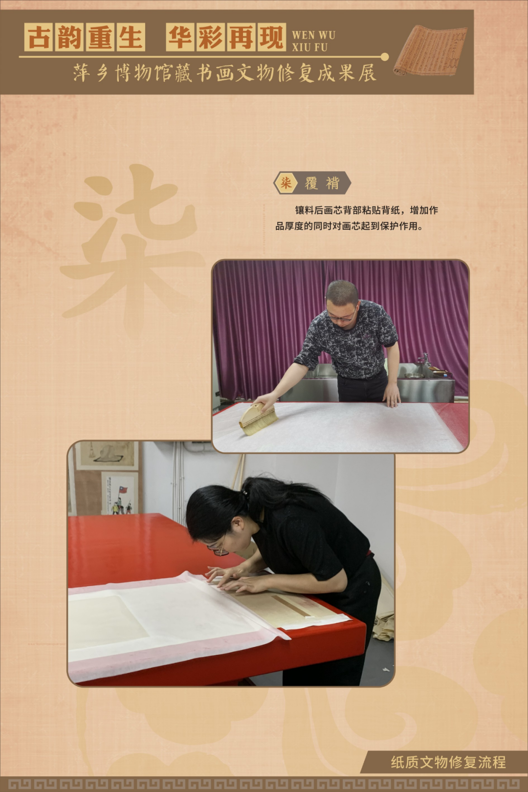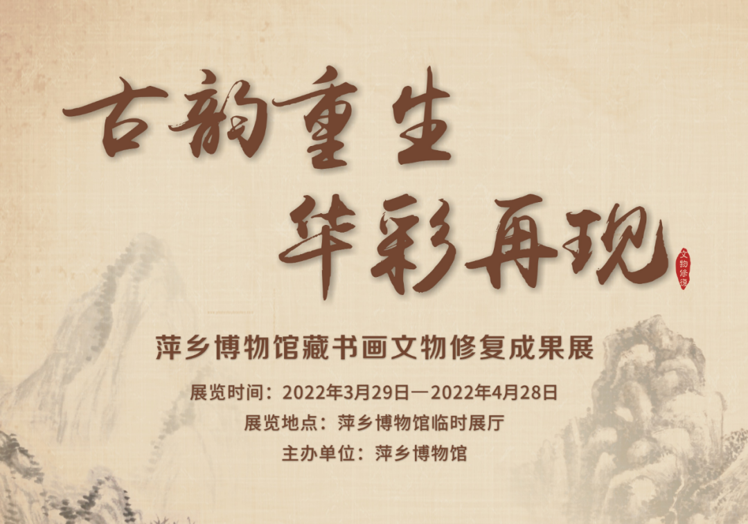 为在疫情防控期间最大限度满足广大观众的观展需求,《古韵重生 华彩再现——萍乡博物馆藏书画文物修复成果展》在线下展览的同时,同步推出线上展览,以飨观众。