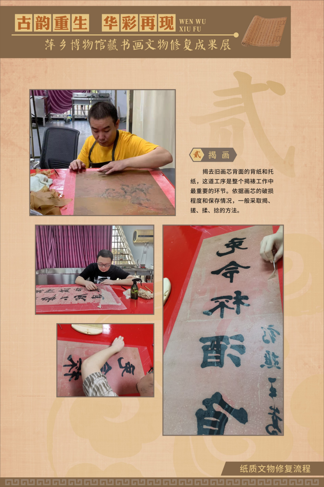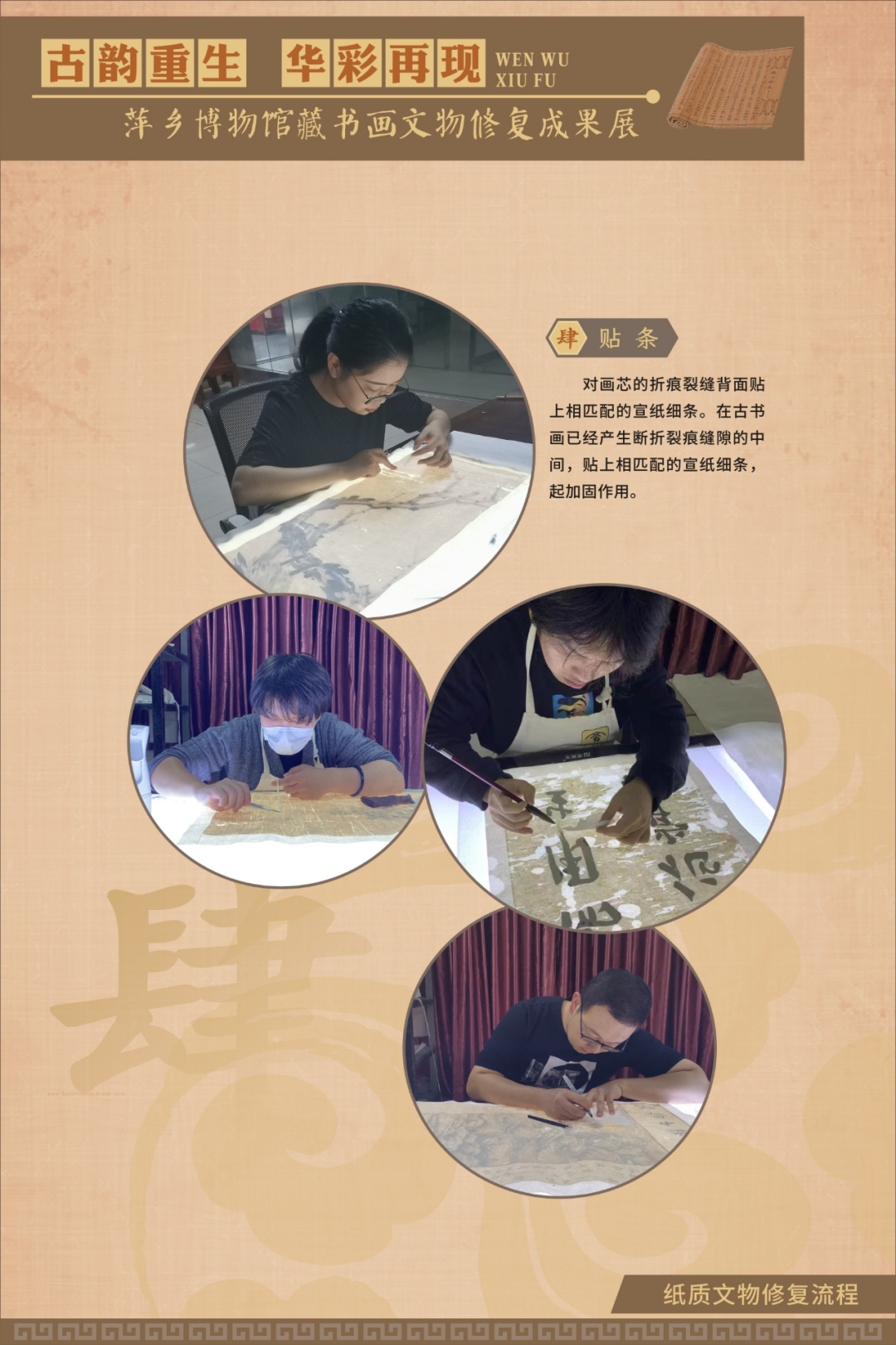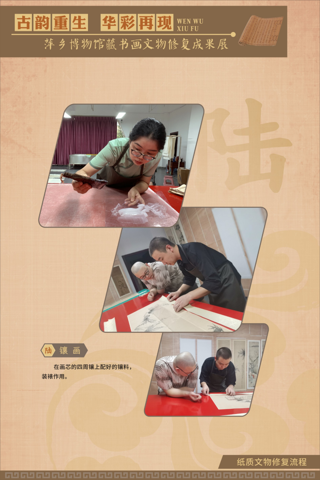 为在疫情防控期间最大限度满足广大观众的观展需求,《古韵重生 华彩再现——萍乡博物馆藏书画文物修复成果展》在线下展览的同时,同步推出线上展览,以飨观众。