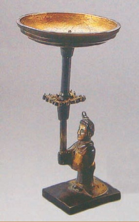 湖北荆州包山楚2号墓出土鎏金人擎铜灯