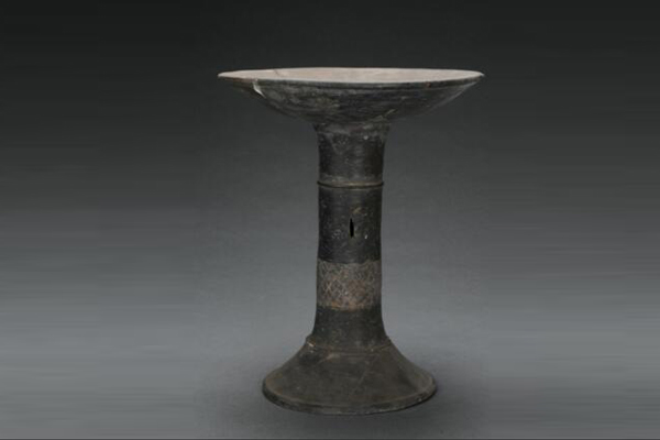 网纹细柄黑陶豆