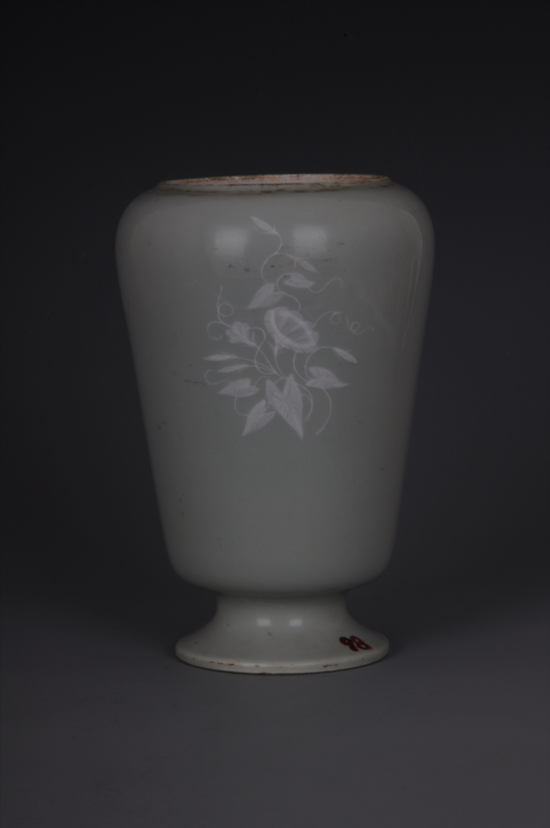 民国豆青釉堆白花铁胆油灯