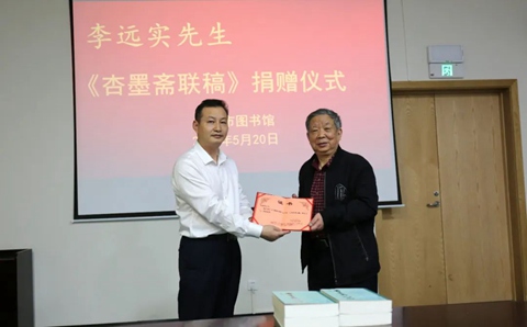 李远实先生向萍乡市图书馆捐赠《杏墨斋联稿》