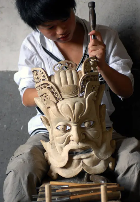 湘东傩面是一门古老的雕刻艺术,由宋代傩面雕刻技艺演变而来,清代已发展成为一门成熟的雕刻技艺,所雕面具古朴细腻,工艺复杂讲究,尤为难得的是现在仍能雕刻440只完整的宋代人形傩面。2006年湘东傩面具雕刻被列入了首批国家级非物质文化遗产名录。