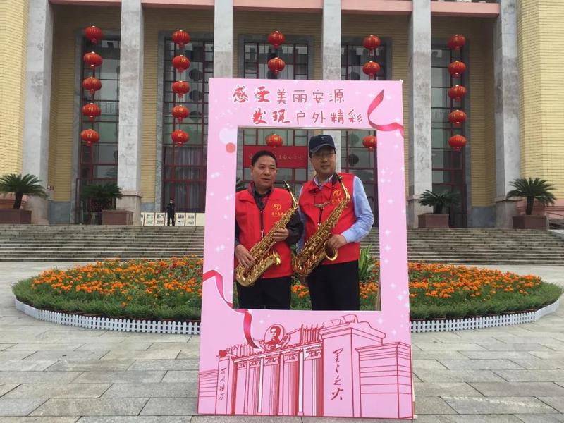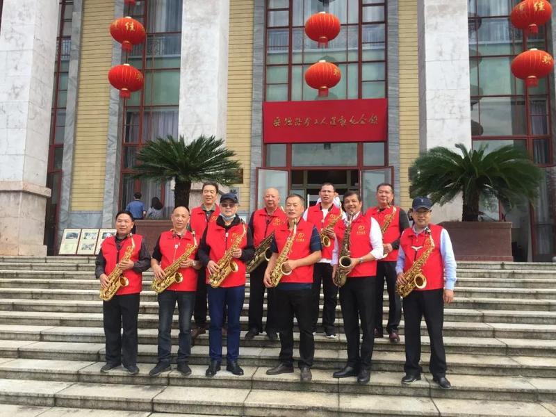 2020年10月1日上午,萍乡市优秀文艺志愿者们吹响萨克斯,与大学生志愿者、红领巾讲解员和文明有礼萍乡人一道,同全国各地游客欢度国庆喜迎中秋,祝福祖国。
