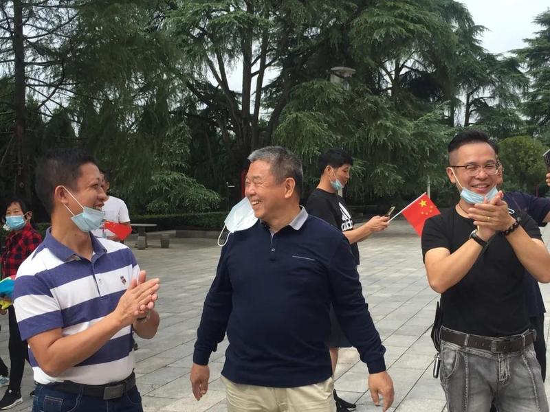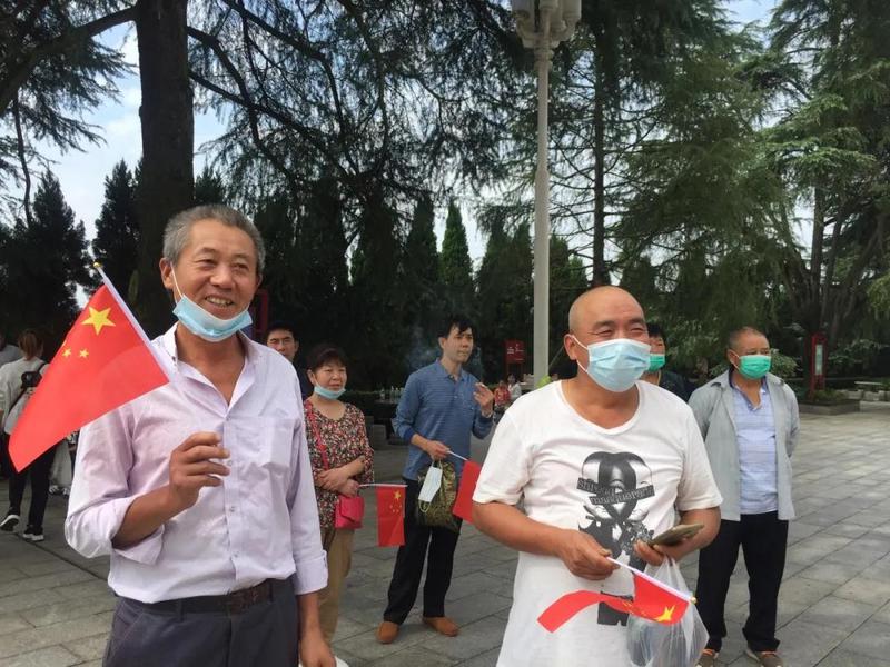 市民们早早的来为祖国庆生