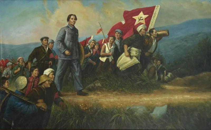 1927年10月,毛泽东率领工农革命军几经转战,到达井冈山的中心茨坪,将红旗插上了井冈山。开始创建全国第一个农村革命根据地,点燃了“工农武装割据”的星星之火。