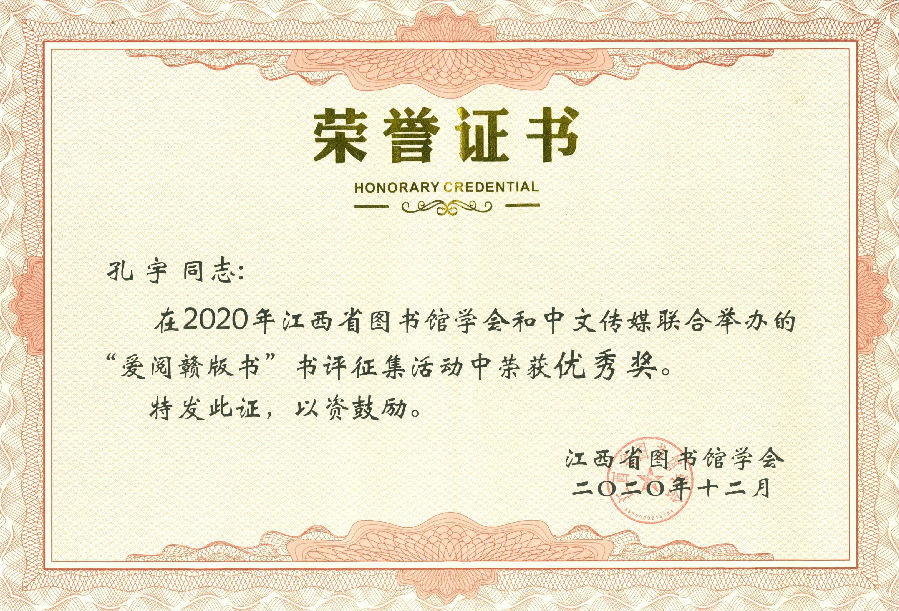 ★孔宇荣获“爱阅赣版书”书评征集活动优秀奖;