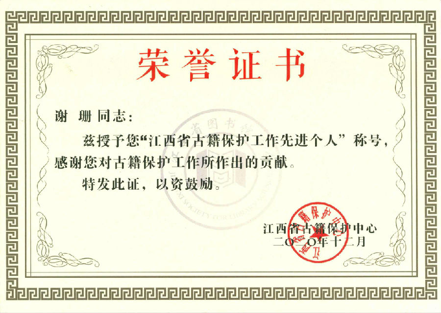 ★谢珊荣获“江西省古籍保护工作先进个人”称号;