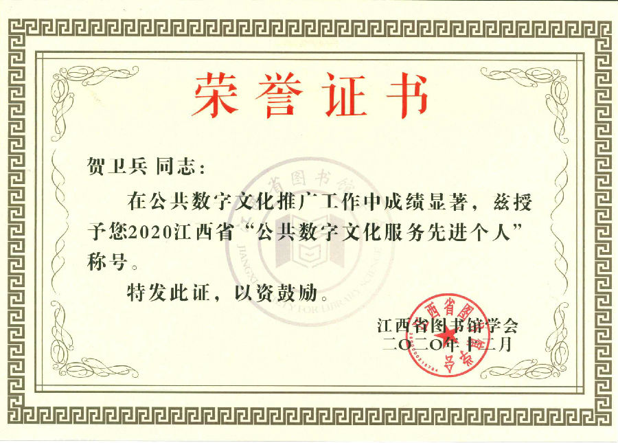 ★贺卫兵荣获2020江西省“公共数字文化服务先进个人”称号;