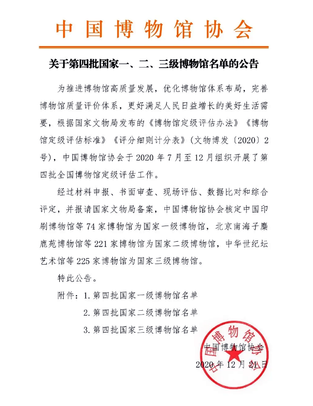 12月21日,中国博物馆协会公布了《关于第四批国家一、二、三级博物馆名单的公告》,萍乡博物馆榜上有名,荣升为国家一级博物馆!