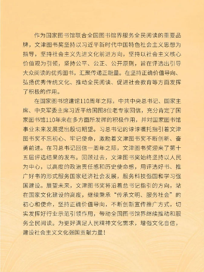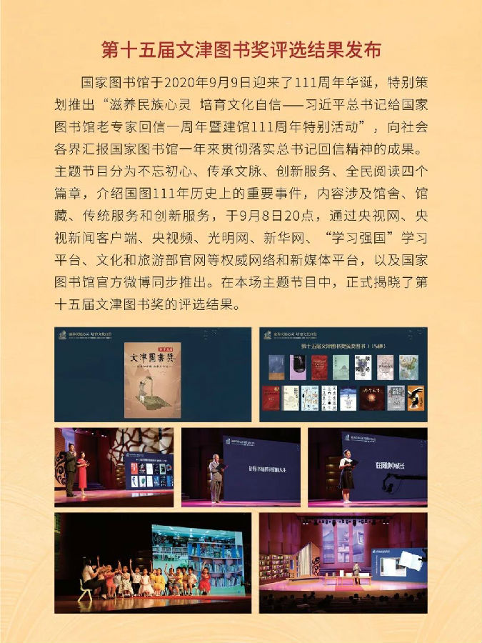 2020年9月9日,国家图书馆喜迎建馆111周年。当天,国家图书馆正式揭晓第十五届文津图书奖社科类、科普类、少儿类15种获奖图书名单。